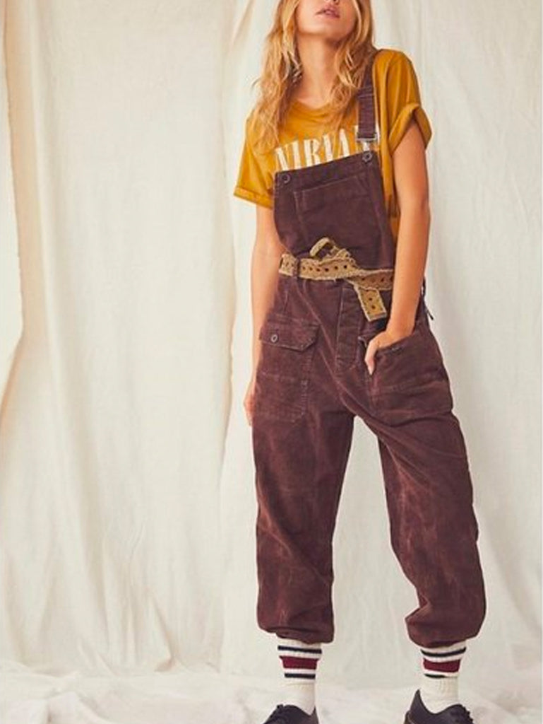 Free People Brown Corduroy Overalls (XS)
