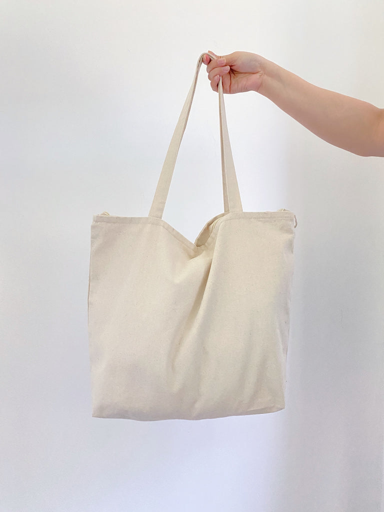 I'm constantly paranoid about losing things so I knew a zipper was 100% necessary! I'm also always bringing all the things with me (especially on thrift trips) so choosing a tote that was larger than average was a must. More room for snacks, amirite?