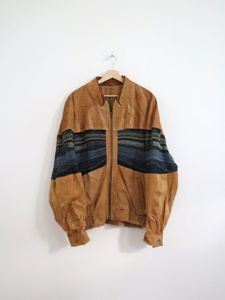 Vintage Camel Leather + Knit Jacket (XL)