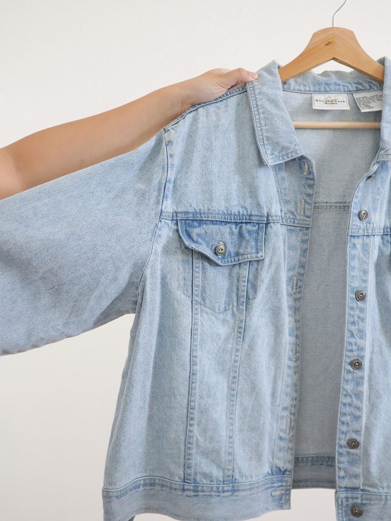 The perfect non-bulky denim jacket for fall in the best light denim wash (aka goes with everything).